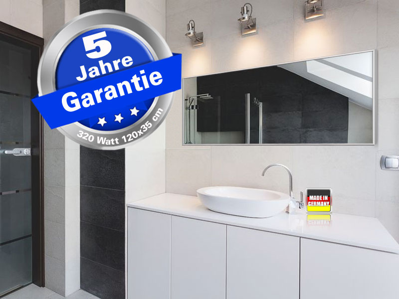 Infrarotheizung 320 Watt weiß / Bad Spiegelheizung mit Alurahmen M10